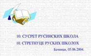 2. „Стретнуца руских школох" ше отримую од 1994. року - перше стретнуце було у Бачинцох (1994), друге, треце и дзевяте у Руским Керестуре (1995, 1996. и 2003), штварте у Шидзе (1997), пияте ювилєйне у Бачкей Тополї и Новим Орахове (1998), шесте у Коцуре (2000), седме у Дюрдьове (2001), осме у Кули (2002), дзешате ювилєйне отримане у Бачинцох (2004), єденасте у Ґосподнїцох (2005), дванасте у Миклошевцох (2006), тринасте у Новим Садзе (2007), штернасте у Вербаше (2008), а петнасте ювилєйне ше планує у Новом Орахове, 2009. року.